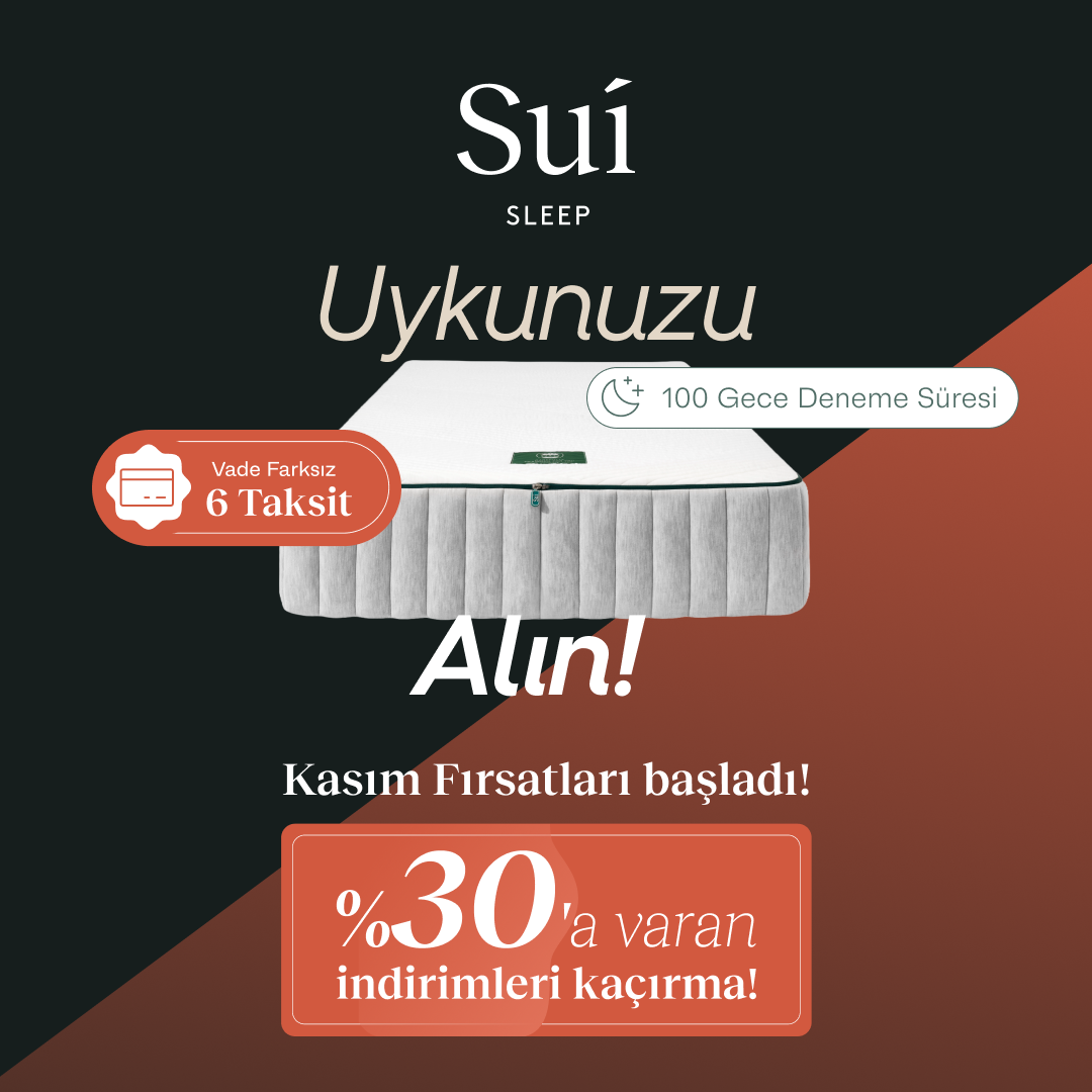 Kasım ayı boyunca tüm Sui Sleep ürünlerinde sepette %30'a varan İNDİRİMLERİ kaçırmayın.
