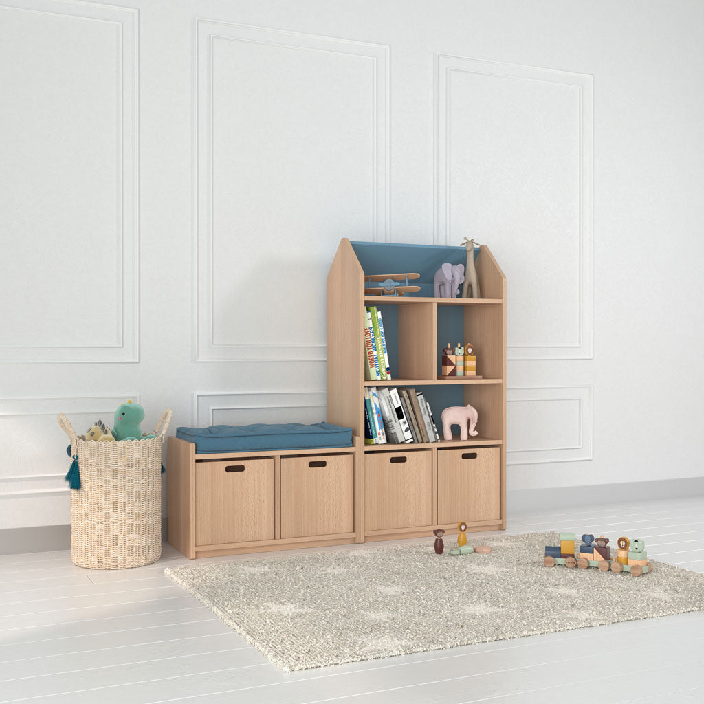 – Toy House Kitaplık, oyuncaklarını veya favori eşyalarını sergileyebilecekleri aynı zamanda eşyalarını depolayabilecekleri, çocukların kolayca erişebileceği şekilde tasarlanmıştır.